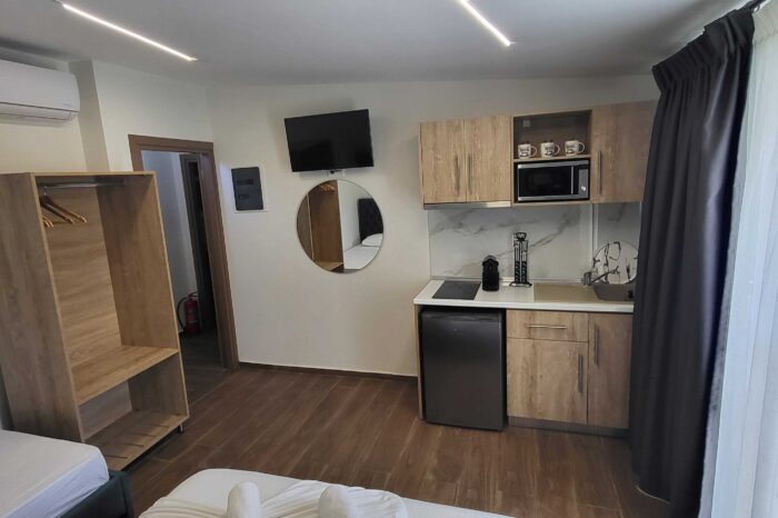 Αυτό το δωμάτιο είναι σχεδιασμένο για να καλύπτει κάθε σας ανάγκη, προσφέροντας υψηλό επίπεδο ιδιωτικότητας και πολυτέλειας. Είτε σχεδιάζετε οικογενειακές στιγμές, ρομαντικές αποδράσεις, είτε χαλαρωτικές διακοπές με φίλους, το deluxe studio υπόσχεται μια μοναδική εμπειρία χαλάρωσης και ευεξίας.