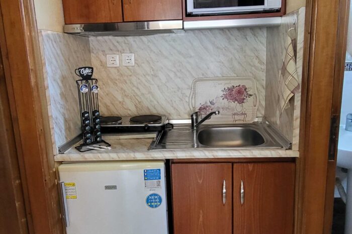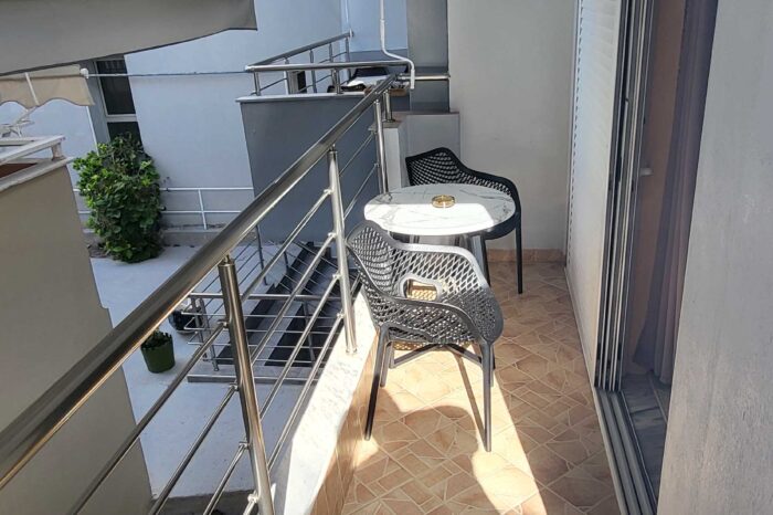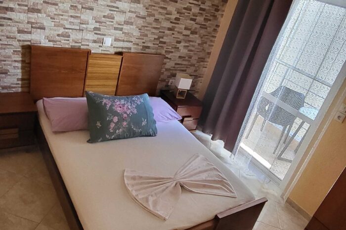 Η πλήρως εξοπλισμένη κουζίνα περιλαμβάνει ψυγείο, φούρνο και όλα τα απαραίτητα σκεύη, επιτρέποντάς σας να προετοιμάσετε γεύματα με άνεση, σαν στο σπίτι σας. Το μπάνιο είναι προσεγμένο, με ντους και είδη προσωπικής υγιεινής, προσφέροντας μια πρακτική και ευχάριστη εμπειρία. Το μπαλκόνι, με μερική στο βουνό, αποτελεί το ιδανικό σημείο για να απολαύσετε τον πρωινό σας καφέ ή να χαλαρώσετε το απόγευμα, σε ένα γαλήνιο περιβάλλον.