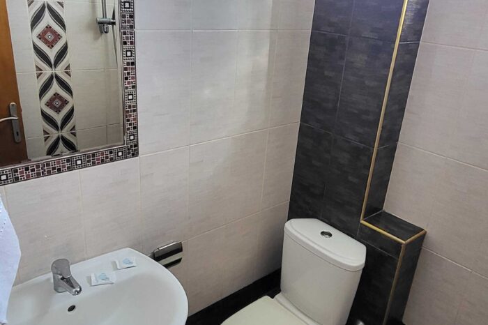 Το family apartment βρίσκεται στον πρώτο όροφο και προσφέρει έναν μοναδικό συνδυασμό άνεσης και λειτουργικότητας, ιδανικό για μια ξεκούραστη και ευχάριστη διαμονή. Με δύο ευρύχωρα υπνοδωμάτια, είναι κατάλληλο για οικογένειες, ζευγάρια ή παρέες φίλων. Το master υπνοδωμάτιο διαθέτει ένα άνετο διπλό κρεβάτι, κλιματισμό (A/C) και δορυφορική τηλεόραση, ενώ το δεύτερο υπνοδωμάτιο είναι εξοπλισμένο με δύο μονά κρεβάτια, παρέχοντας ευελιξία στις ανάγκες των φιλοξενούμενων.