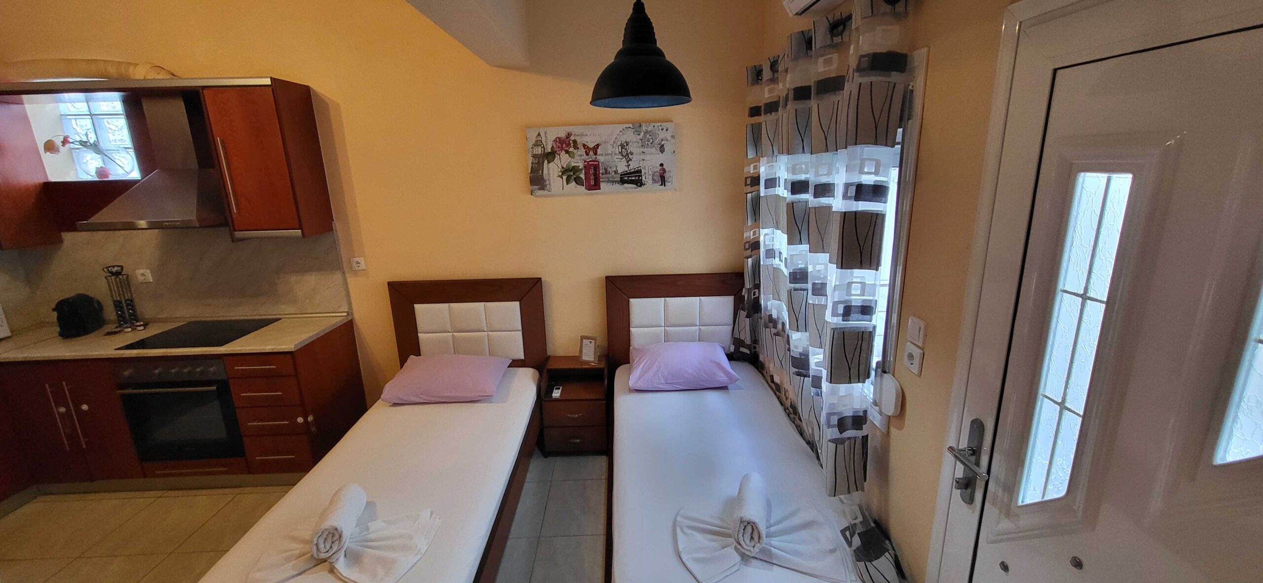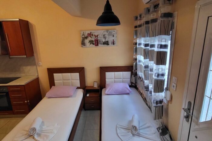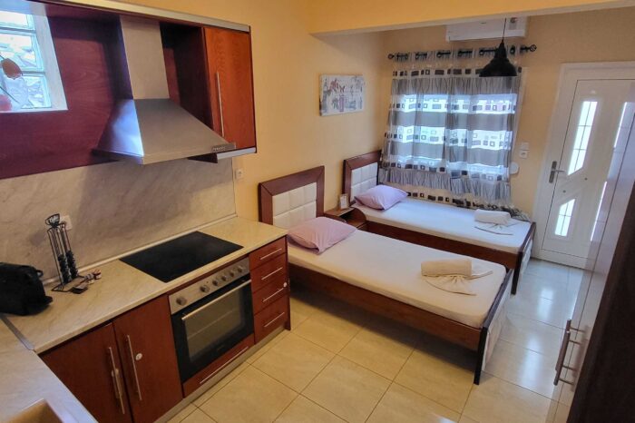 Το family apartment βρίσκεται στο ισόγειο προσφέρει έναν μοναδικό συνδυασμό άνεσης και λειτουργικότητας, ιδανικό για μια ξεκούραστη και ευχάριστη διαμονή. Με δύο ευρύχωρα υπνοδωμάτια, είναι κατάλληλο για οικογένειες, ζευγάρια ή παρέες φίλων. Το master υπνοδωμάτιο διαθέτει ένα άνετο διπλό κρεβάτι, κλιματισμό (A/C) και δορυφορική τηλεόραση, ενώ το δεύτερο υπνοδωμάτιο είναι εξοπλισμένο με δύο μονά κρεβάτια, παρέχοντας ευελιξία στις ανάγκες των φιλοξενούμενων.